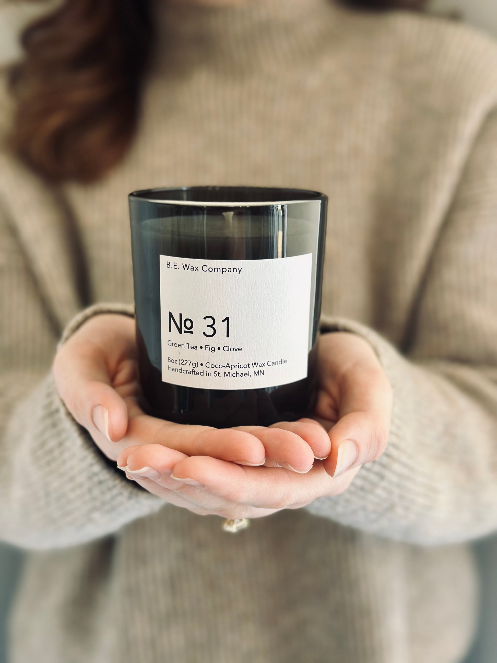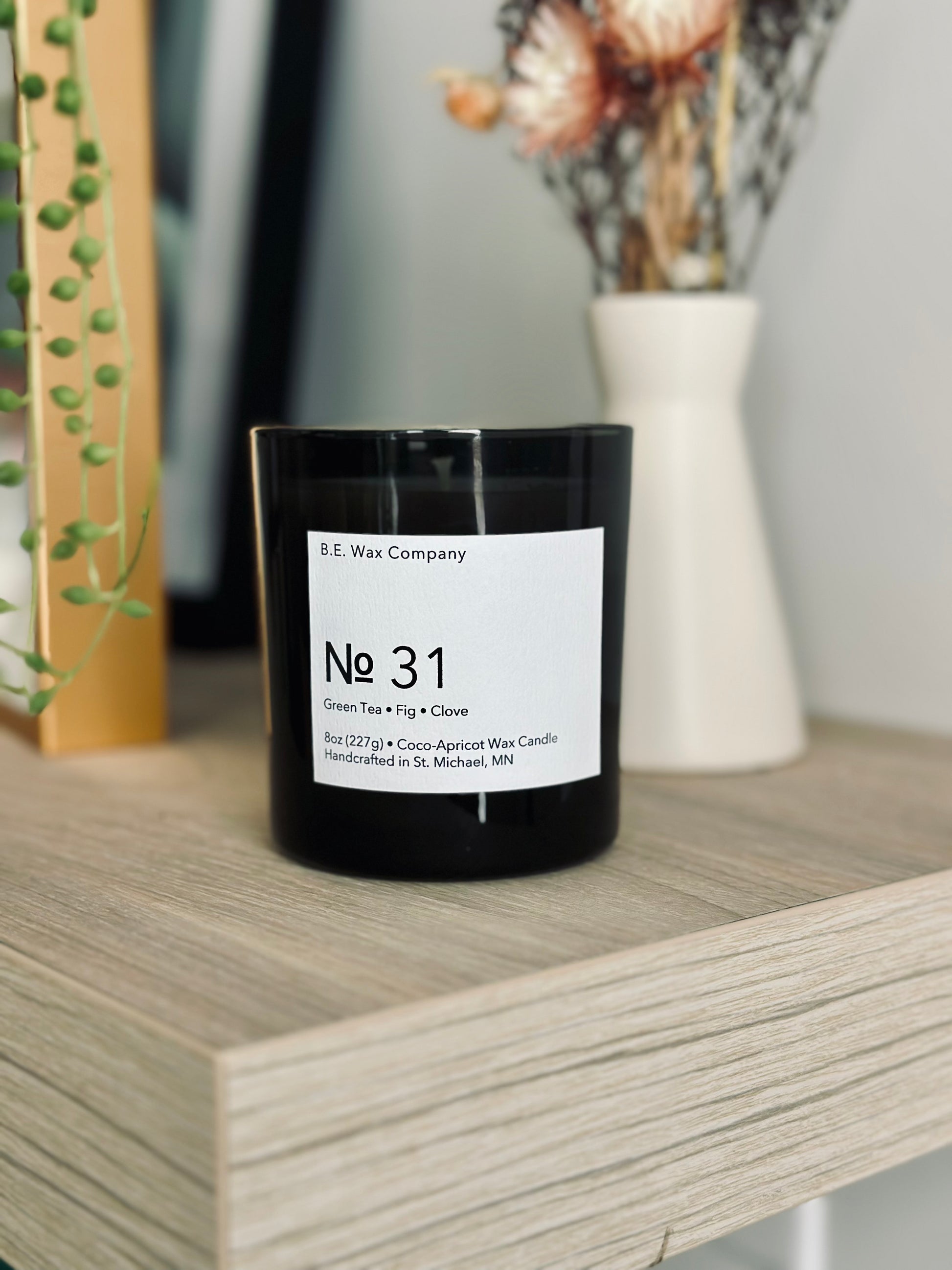 Indulge in luxury with No. 31 candle. This sultry, sexy candle combines the invigorating scents of green tea, fig, and clove to create a soothing and sensual atmosphere. Treat yourself or a loved one to this decadent experience.