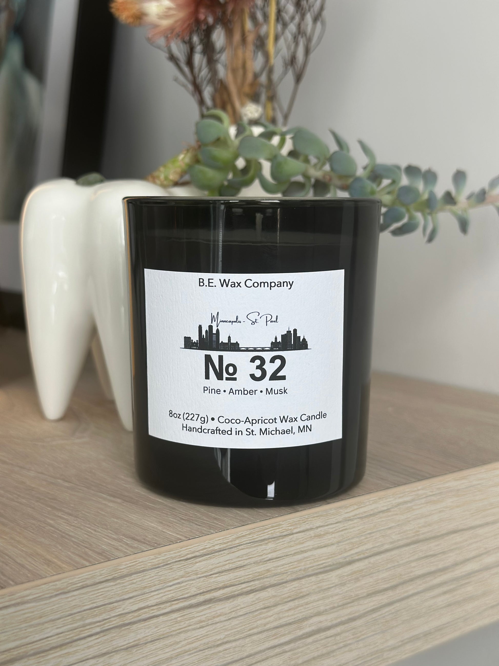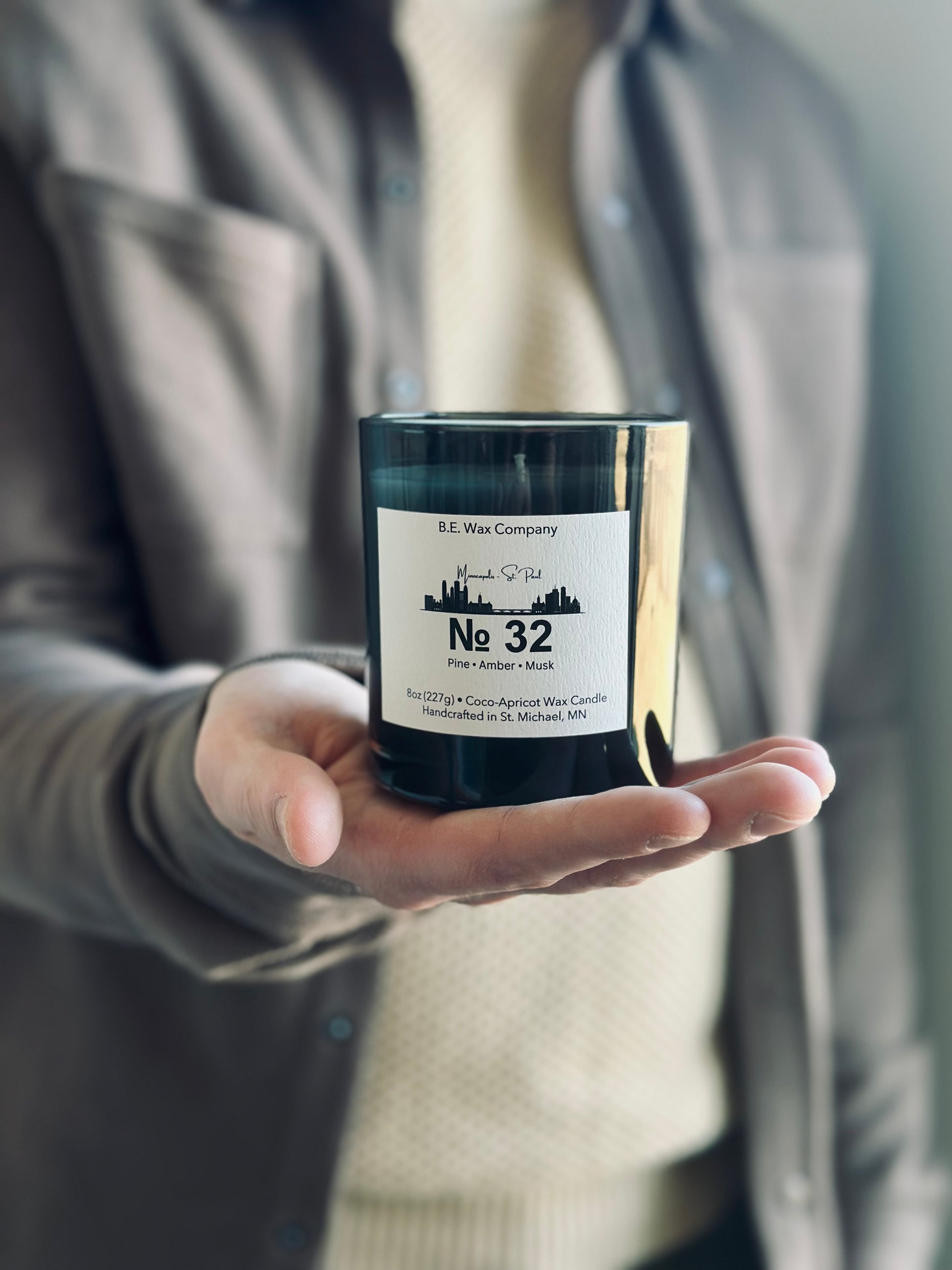 Light up your home with No. 32, a candle inspired by the iconic scents of Minnesota. Hints of pine, amber, and musk create a cozy atmosphere and evoke memories of the great outdoors. Bring a piece of the 32nd state into your home with this unique and inviting fragrance.