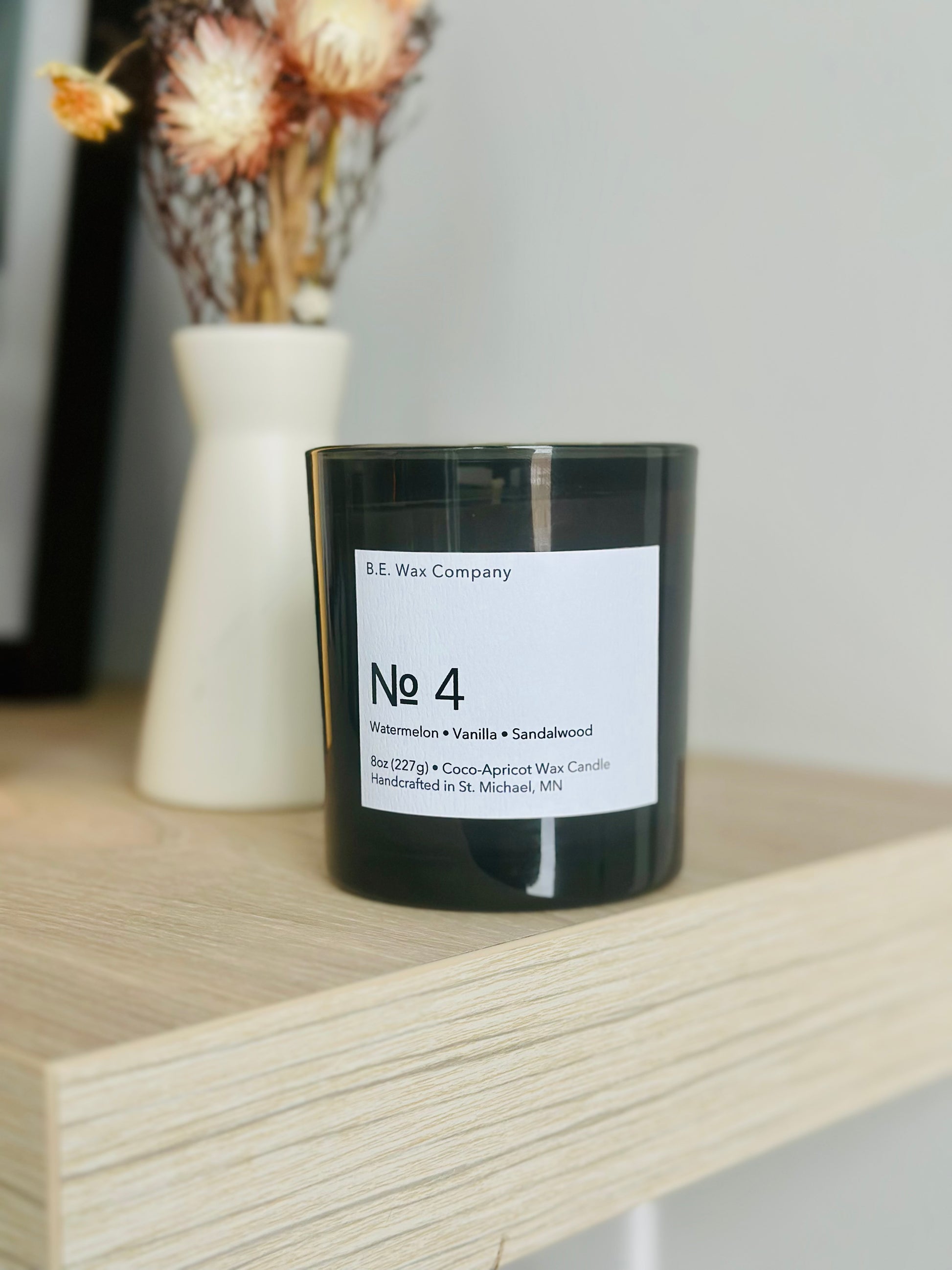 Transform your home into a tranquil oasis with our No. 4 candle. Embrace the refreshing blend of watermelon, vanilla, and sandalwood and indulge in its soothing aroma. Let our candle fill your space and bring a sense of calm to your daily life.