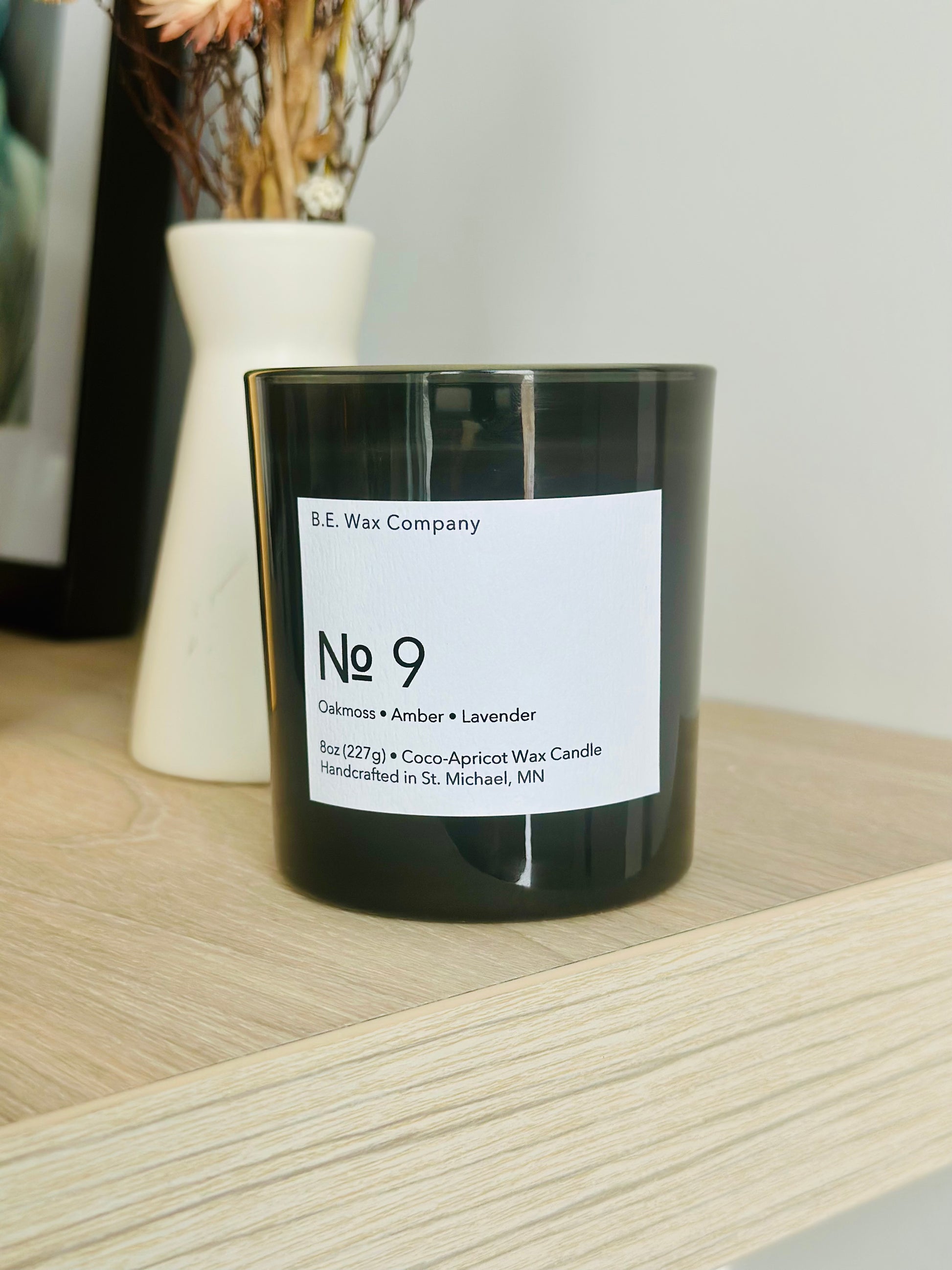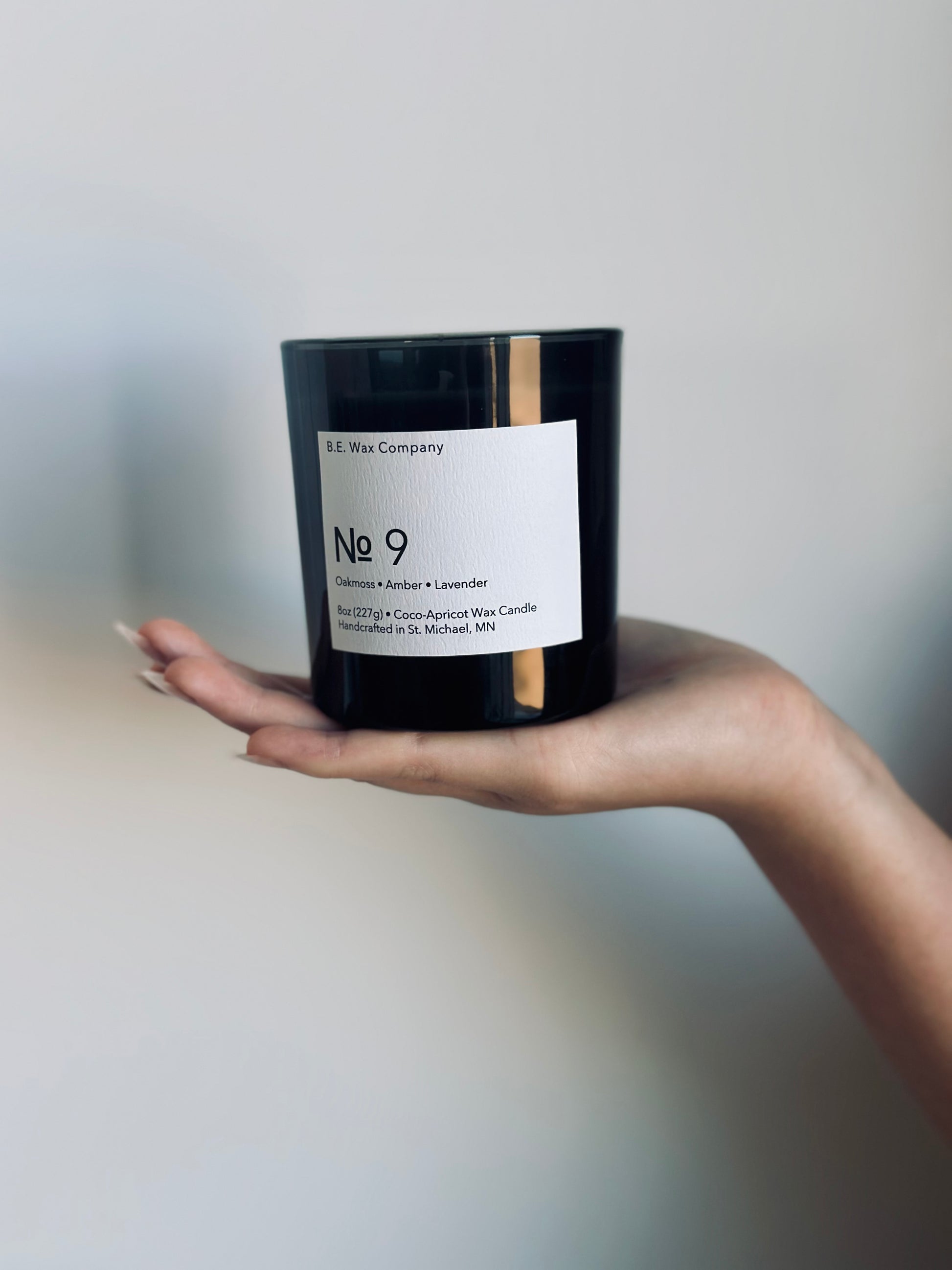 Indulge in the luxury of No. 9 candle. Enjoy the captivating scents of oak moss, amber, and lavender as it fills your space. Elevate your senses with this premium experience.
